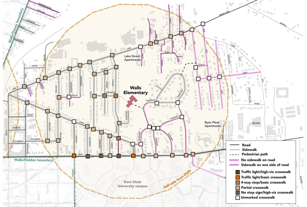 We worked with the City of Kent and Kent City Schools to conduct walk audits, create maps for workshop with stakeholders, and analyze survey results. These maps help to visualize road designs that prevent parents and students from feeling safe walking to school. This community project informed “A critical assessment of the role of mapping in Ohio Safe Routes to School travel plans.“